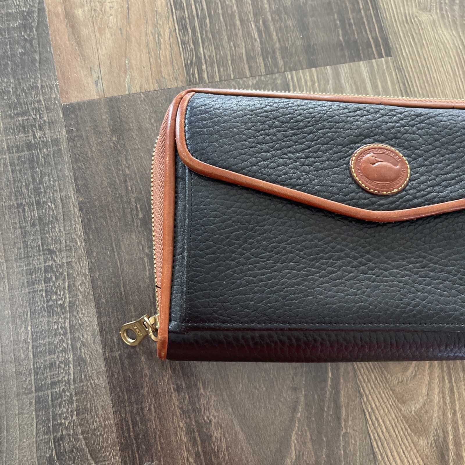 Vintage Dooney & Bourke All Weather Leather Large Zip Along Wallet Crossbody Bag