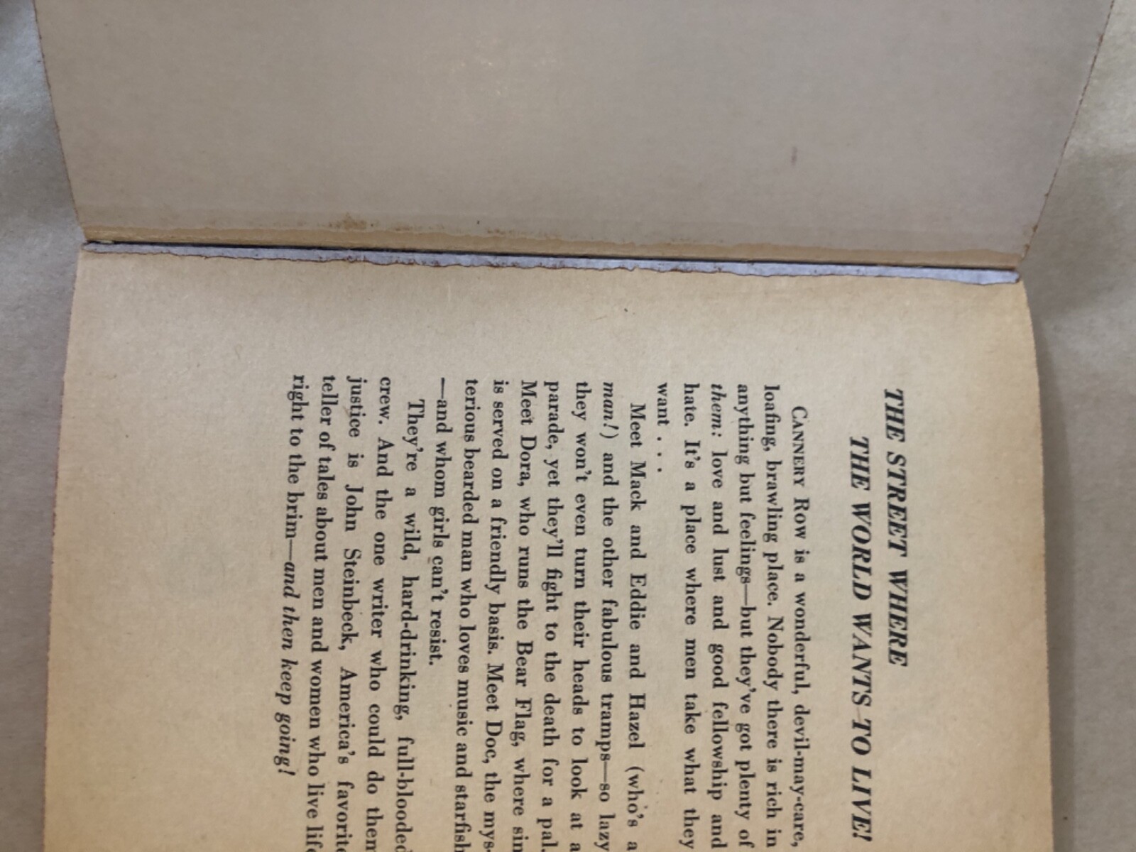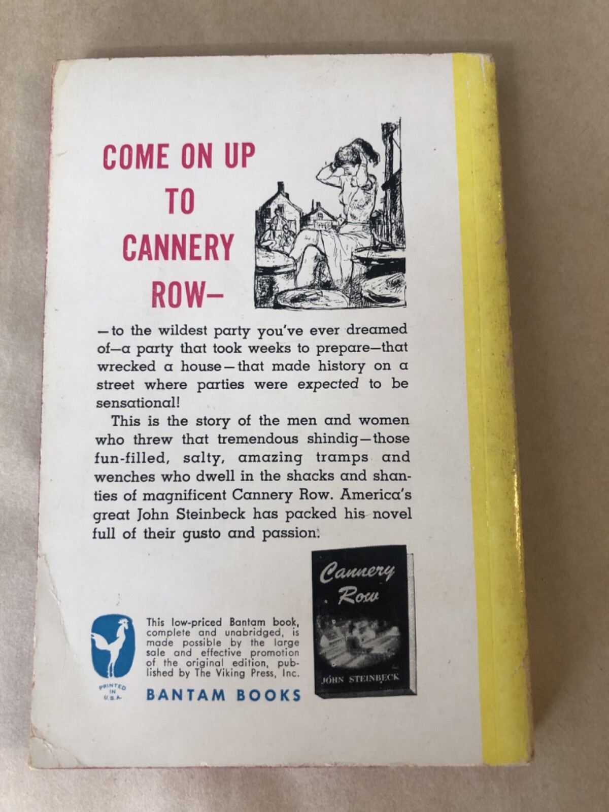CANNERY ROW - JOHN STEINBECK - VINTAGE PB - BANTAM #75 8th printing 1950 classic