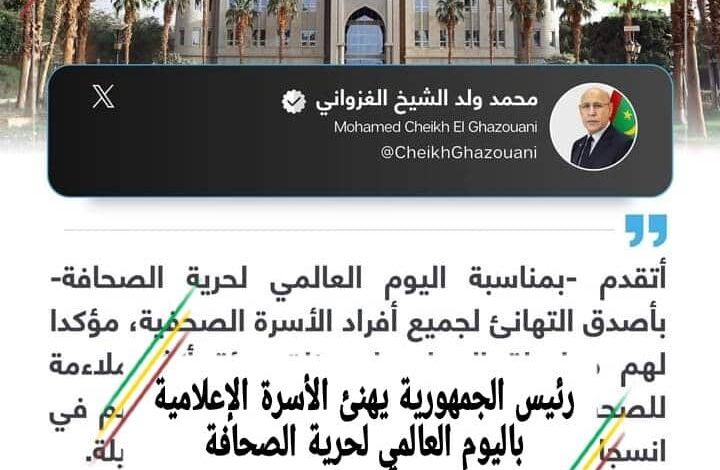 أتقدم -بمناسبة اليوم العالمي لحرية الصحافة- بأصدق التهانئ لجميع أفراد الأسرة الصحفية، مؤكدا لهم مواصلة العمل على خلق بيئة أكثر ملاءمة للصحفيين، من أجل تمكينهم من أداء واجباتهم في انسجام مع قوانين وأخلاقيات هذه المهنة النبيلة.