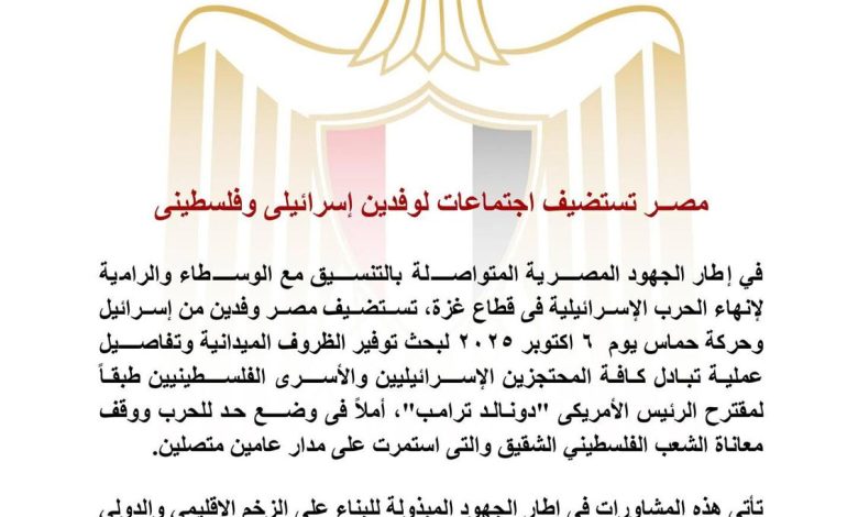 وقالت الخارجية المصرية، في بيان لها، إن “الاجتماعات تبحث توفير الظروف الميدانية وتفاصيل تبادل المحتجزين الإسرائيليين والأسرى الفلسطينيين”.