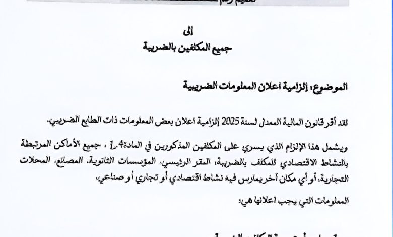 إلزامية إعلان المعلومات الضريبية: تعميم جديد من مديرية الضرائب