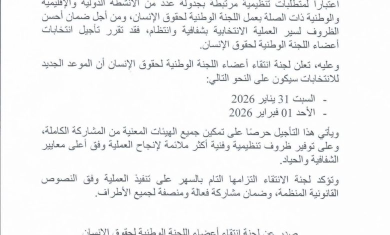 تأجيل انتخابات أعضاء اللجنة الوطنية لحقوق الإنسان إلى يناير وفبراير 2026