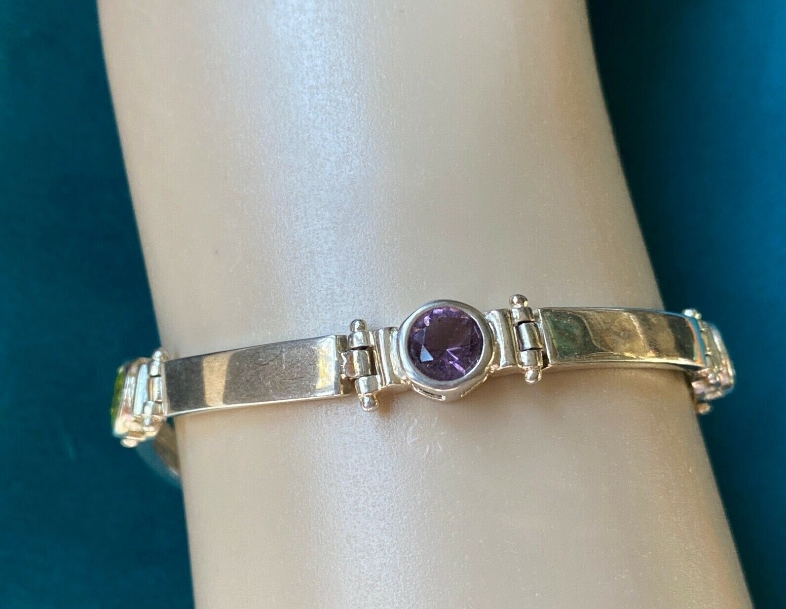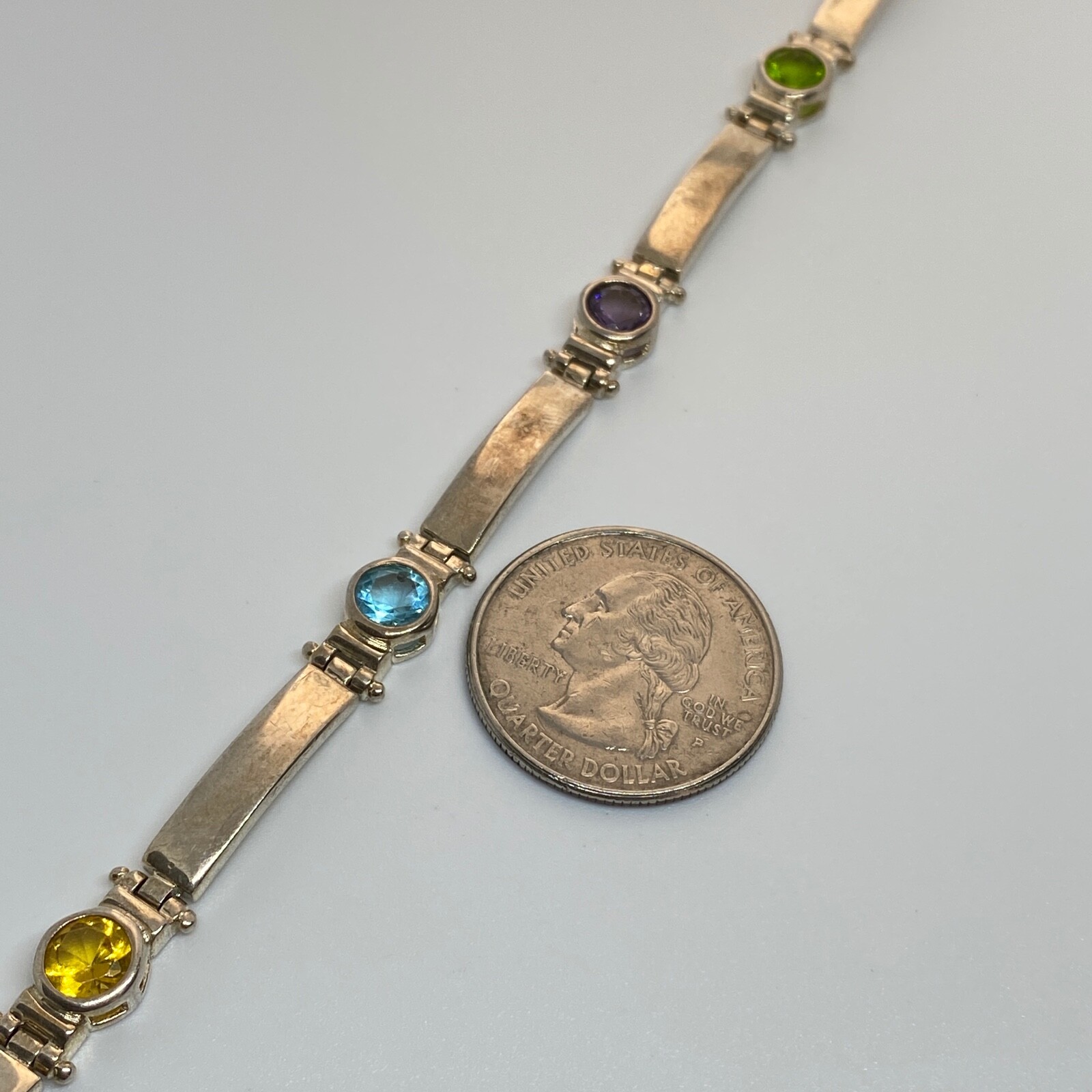 Vintage Sterling Silver Multi Color CZ Bracelet-Measures: 7" long-Weight: 11.3 gramsPlease note, most of my store's items are vintage and pre-owned. Please view all pictures to see any wear. All stones are in tact unless otherwise noted. All sterling silver listings are either marked 925 or tested if no marking. Please also ask any other questions you may have. Thank you and have a great day!