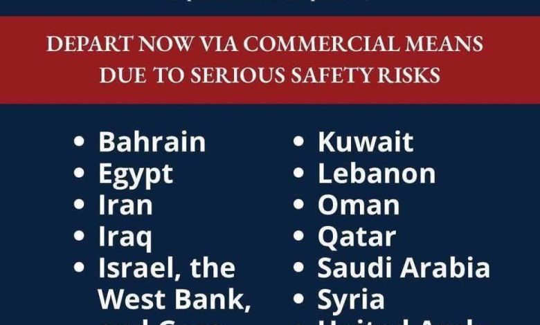 الولايات المتحدة تدعو رعاياها إلى مغادرة عدة دول في الشرق الأوسط فوراً بسبب مخاطر أمنية جسيمة