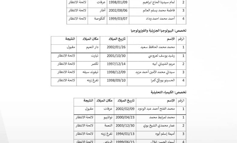 ودعت المديرية المعنيين إلى الاطلاع على اللوائح المرفقة للتأكد من أسمائهم والتقيد بالموعد المحدد