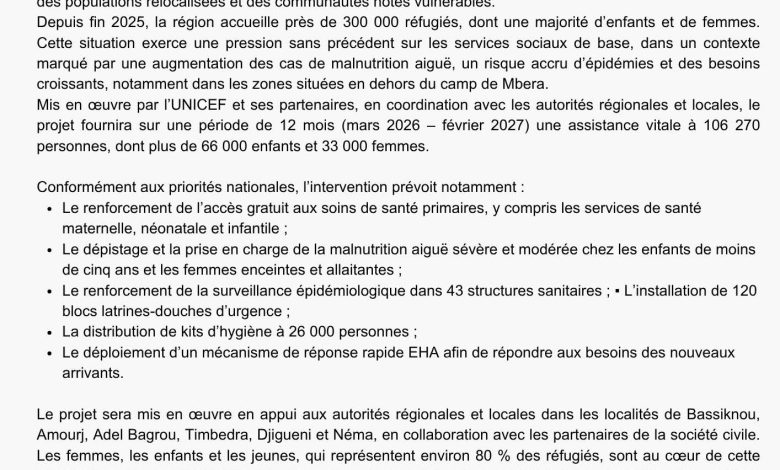 وسيتم تنفيذ هذه البرامج بالتنسيق مع السلطات الوطنية والشركاء المحليين في عدة مناطق من الحوض الشرقي، من بينها باسكنو، وعدل بكرو، وتمبدغة، وجيكني، ونعمة، مع التركيز على دعم الفئات الأكثر هشاشة وتعزيز صمود المجتمعات المضيفة.