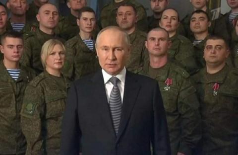 ولأول مرة سجل بوتين كلمته للروس، بمناسبة عيد رأس السنة، ليس على خلفية الكرملين وإنها وسط مجموعة من العسكريين المشاركين في “العملية العسكرية الخاصة” أي الحرب على أوكرانيا.