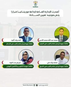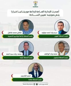 الإدارة العامة لشبكة إذاعة موريتانيا تجري تغييرات فى طواقم الإذاعة بالولايات الداخلية