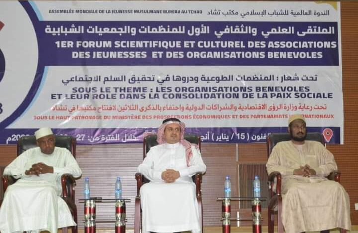 شهدت عصر اليوم قاعة الثقافة والفنون المعروف بقصر الخامس عشر من يناير فعاليات اختتام الملتقى العلمي والثقافي الأول للمنظمات والجمعيات الشبابية الذي نظمته منظمة الندوة العالمية للشباب الإسلامي مكتب تشاد برعاية من وزارة الرؤى الاقتصادية والشراكات الدولية ، المناسبة كانت بحضور نائب سفير المملكة العربية السعودية ومدير مكتب الندوة العالمية للشباب الإسلامي مكتب تشاد