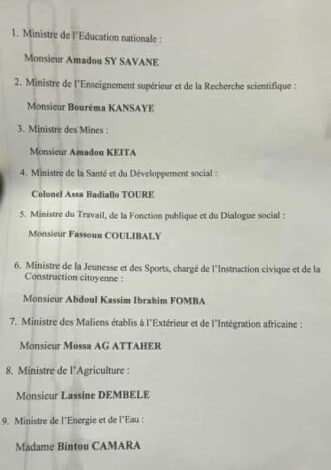أجرى رئيس المرحلة الانتقالية في مالي آسيمي اكويتا. مساء اليوم السبت تعديلا وزاريا جديدا في حكومة الوزير الأول شوكو ميلا مايغا. وشمل التعديل الجديد بحسب الوثيقة إلى 16وزيرا. وتم فيه استبعاد جميع الوزارء المحسوبين على الحركة العربية الازوادية. وهم الوزيرين هارون توري ممثل حركة” بلاتفورم” ومحمد محمود عن “حركة سيما”. في المقابل أعطيت حقيبتين وزاريتين للحركات الطوارق.